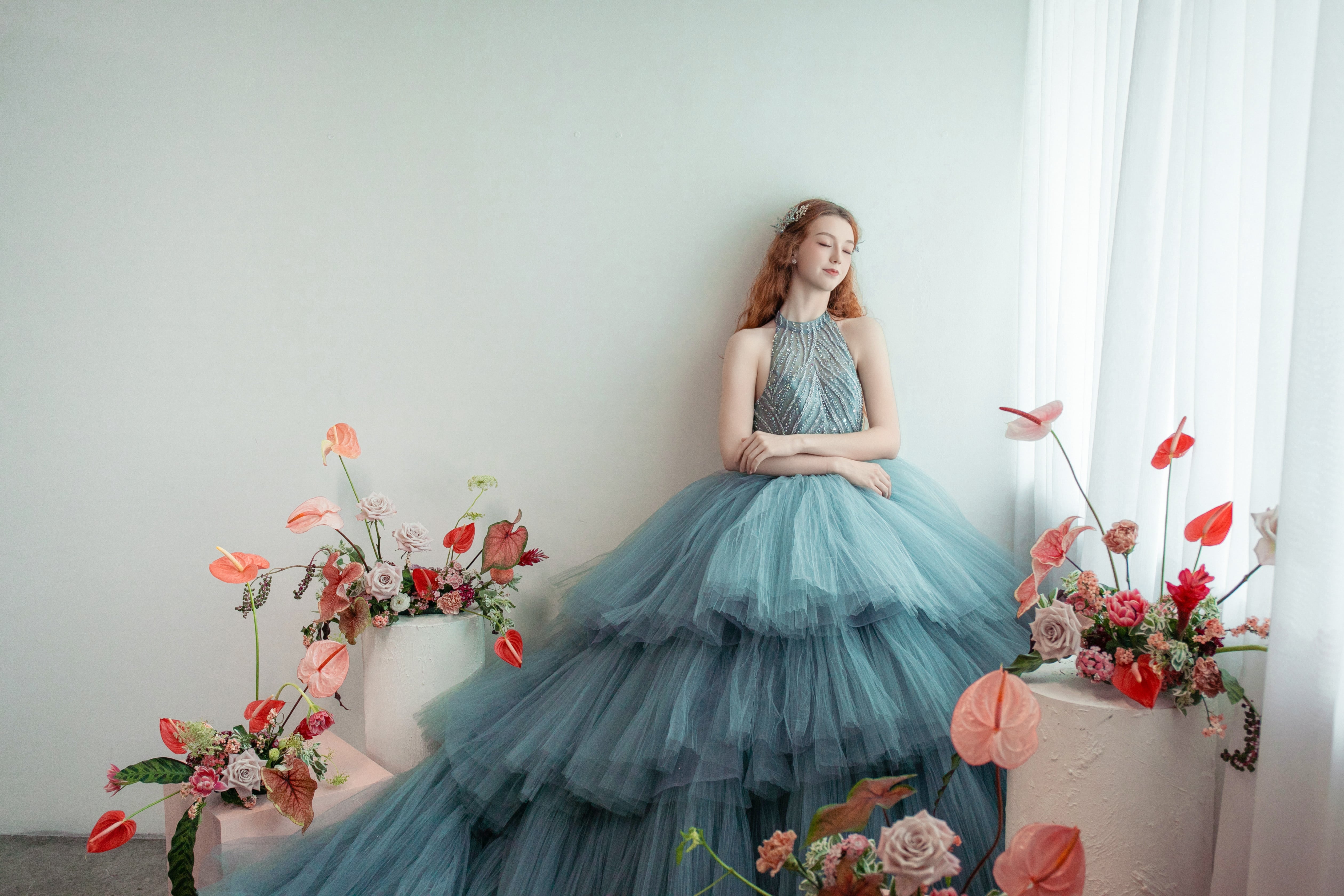 Our boutique includes an indoor studio for modern pre-wedding shoots, offering a seamless and convenient experience from gown selection to professional photography.