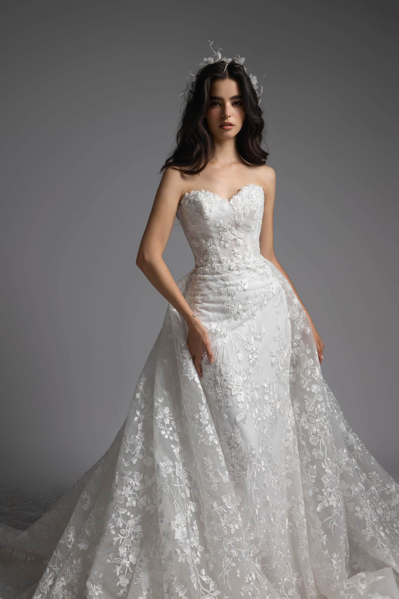 Our exclusive collection features beautifully crafted gowns designed in-house, ensuring unique and exquisite options for every bride.