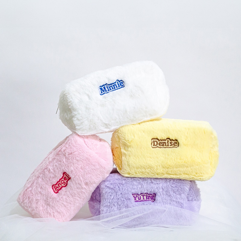 Looking for a cute and practical gift for your friends or loved ones? Our fluffy, soft pouches are the perfect solution! Available in multiple colors, you can personalize each pouch with a name of your choice, making it a unique and thoughtful gift for any occasion.